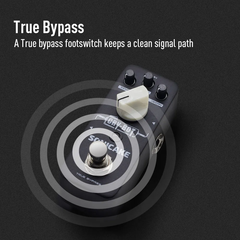 Full analog, true bypass. Cry-Bot delivers a very rapid and accurate tracking of your pickin' dynamics. It literally illustrate the saying "Tone comes from your fingers".